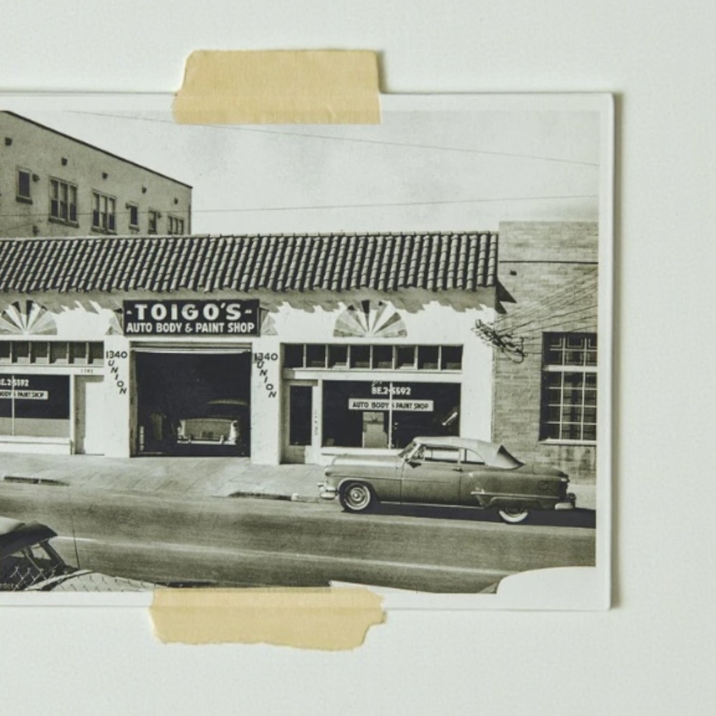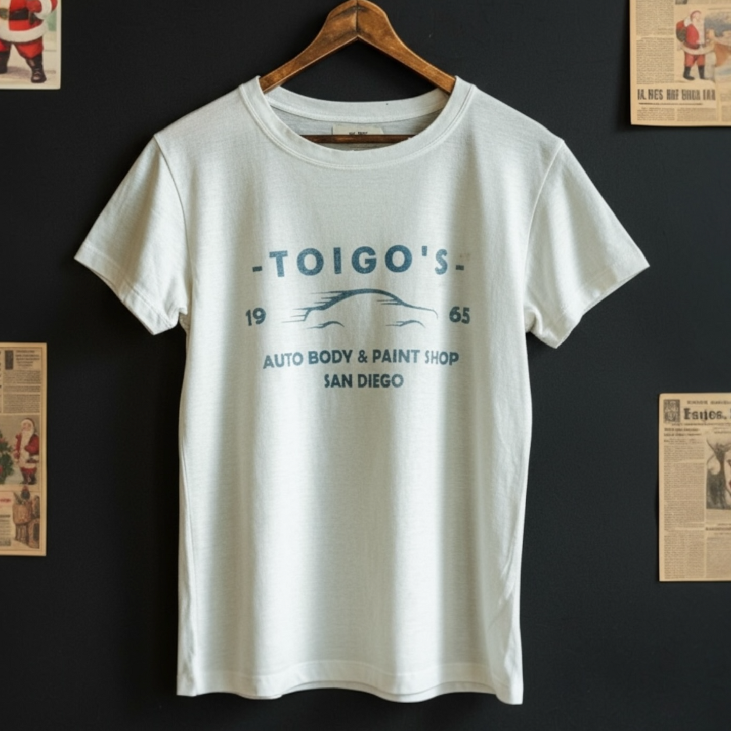 Toigo’s Auto Body and Paint Shop existed when large tailfins, lots of chrome, elaborate taillights, and hood ornaments were all the rage. Now we draw inspiration from that shop and celebrate the many cars it serviced in the 1950’s with this hand drawn and locally screen printed tee.